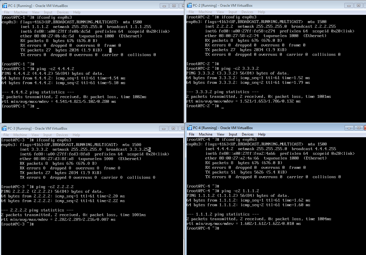 make sure each Router-n router machine can ping the PC-n non-router in its diagonal