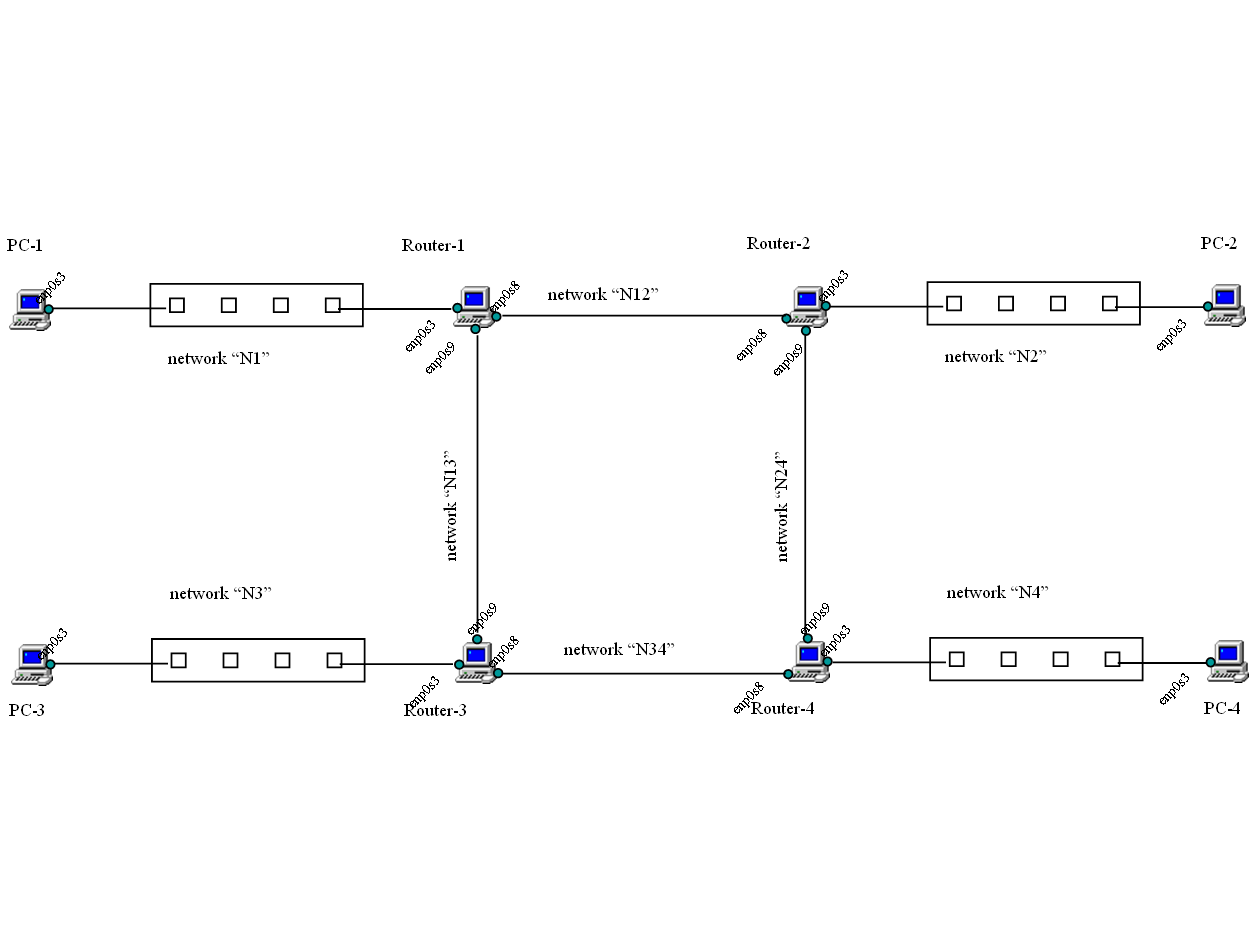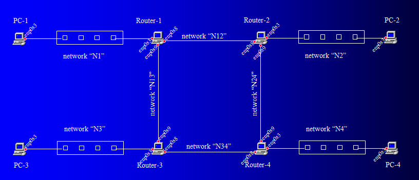 → make another network named N34 that joins Router-3 and Router-4, using their Adapter2's/enp0s8's